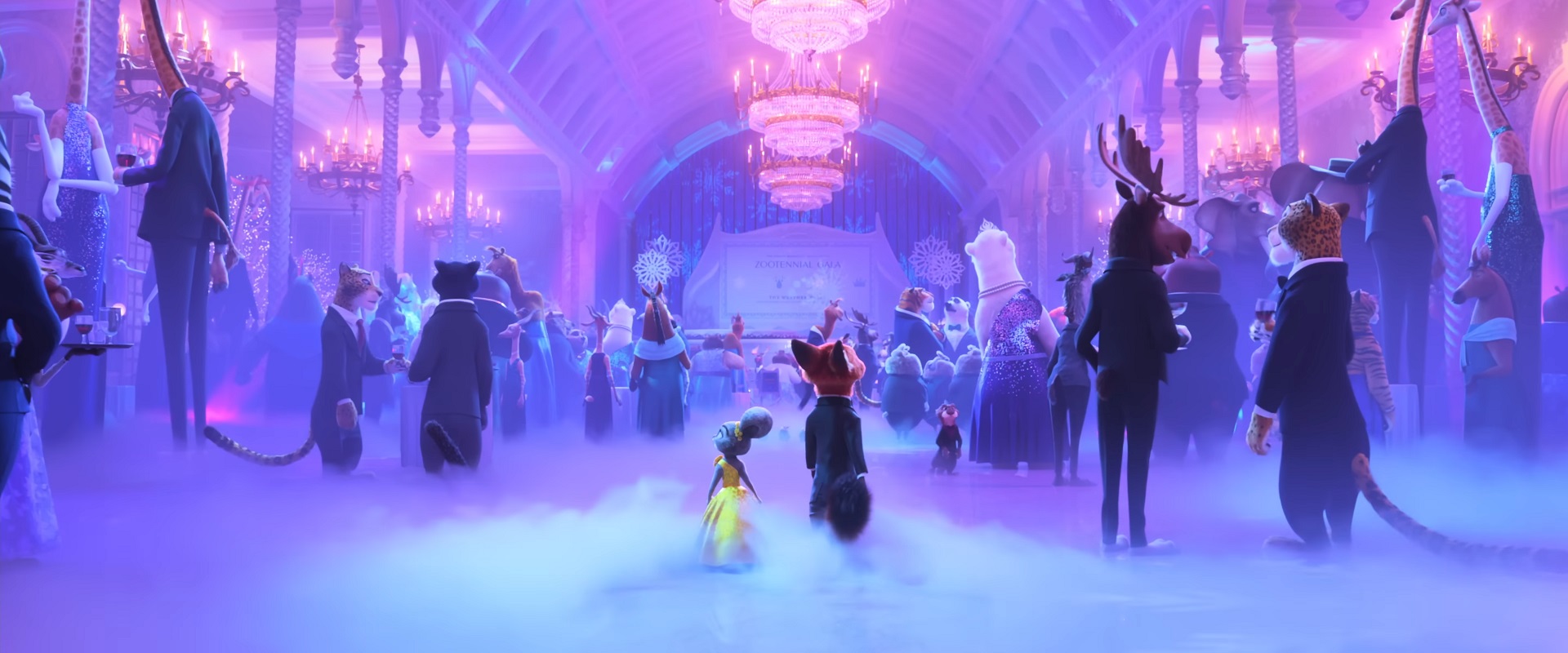 我孩子提到的这个片段恰好也是《疯狂动物城》世界观魅力的缩影:反差感满满的主角搭档之间的互动让人看着特别开心;导演很懂得该怎么为侦探故事营造悬念;动作戏也堪称完美,分镜非常用心,有清晰的视觉铺垫和伏笔回收;两人在离开宴会时抖的包袱,与他们来时随口说的笑话形成了前后呼应。