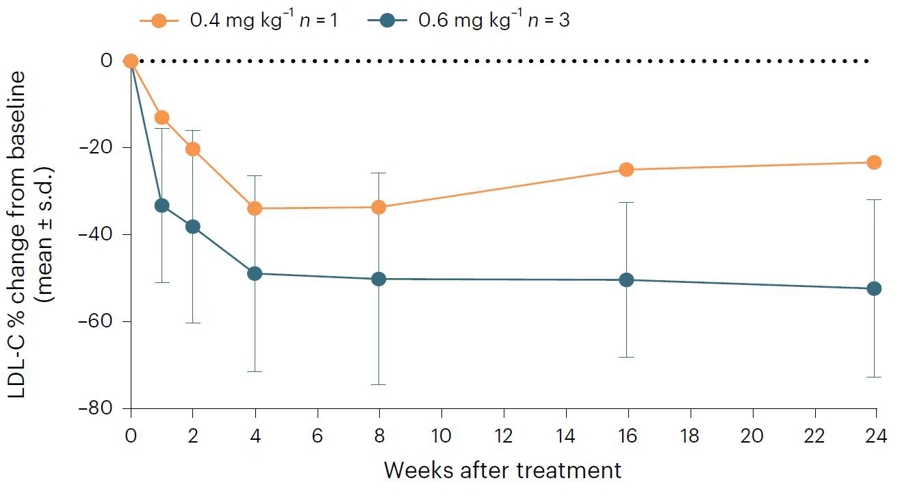 基因治疗后血清LDL-C水平变化